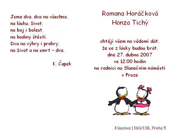 Maminko, tatínku, my se máme rádi a budeme se brát :o).